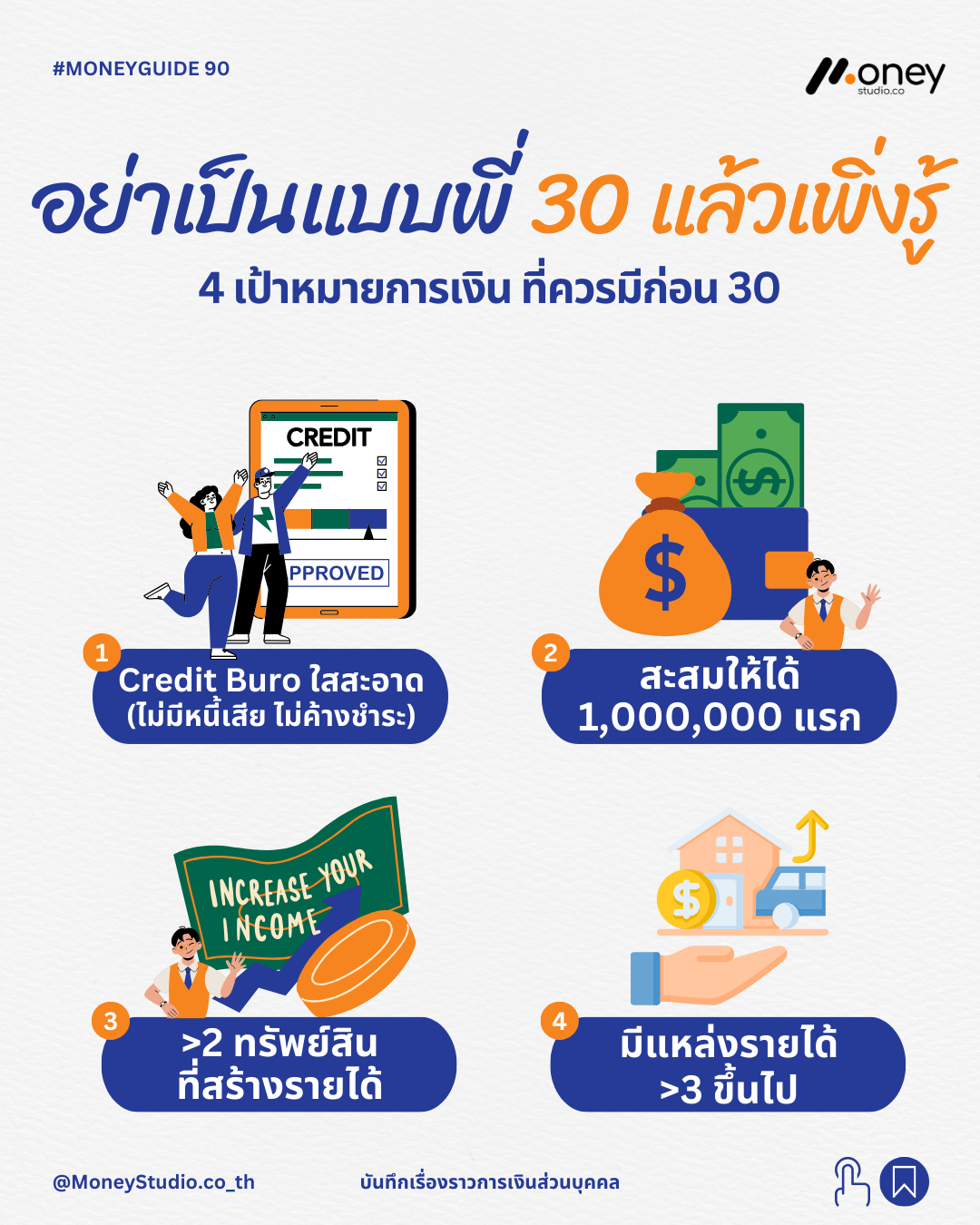 การบรรลุเป้าหมายทั้ง 4 ข้อนี้ก่อนอายุ 30 ไม่ได้มีจุดประสงค์เพื่อการอวดความมั่งคั่ง แต่คือการสร้าง “อิสรภาพ” และ “โอกาส” ในการเลือกทางเดินชีวิตที่คุณต้องการในอนาคต การวางรากฐานที่ดีตั้งแต่วันนี้จะช่วยให้ชีวิตในวัย 30 ของคุณมั่นคงและมีความสุขอย่างยั่งยืน