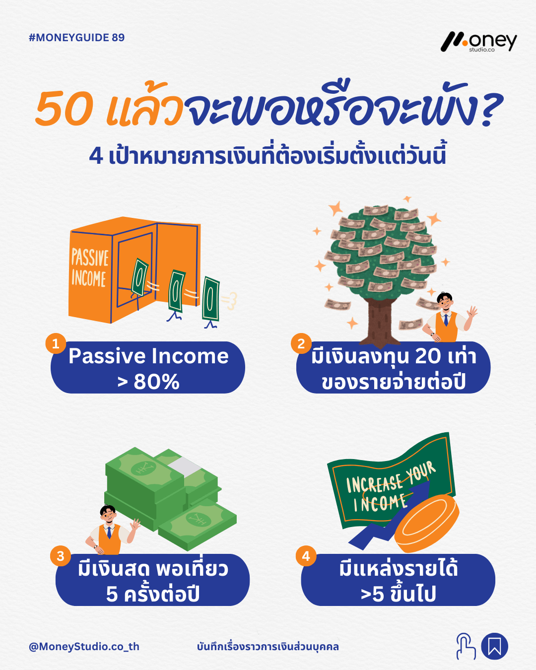 1. มีรายได้ทางอ้อม (Passive Income) มากกว่าร้อยละ 80 ของรายได้ทั้งหมด