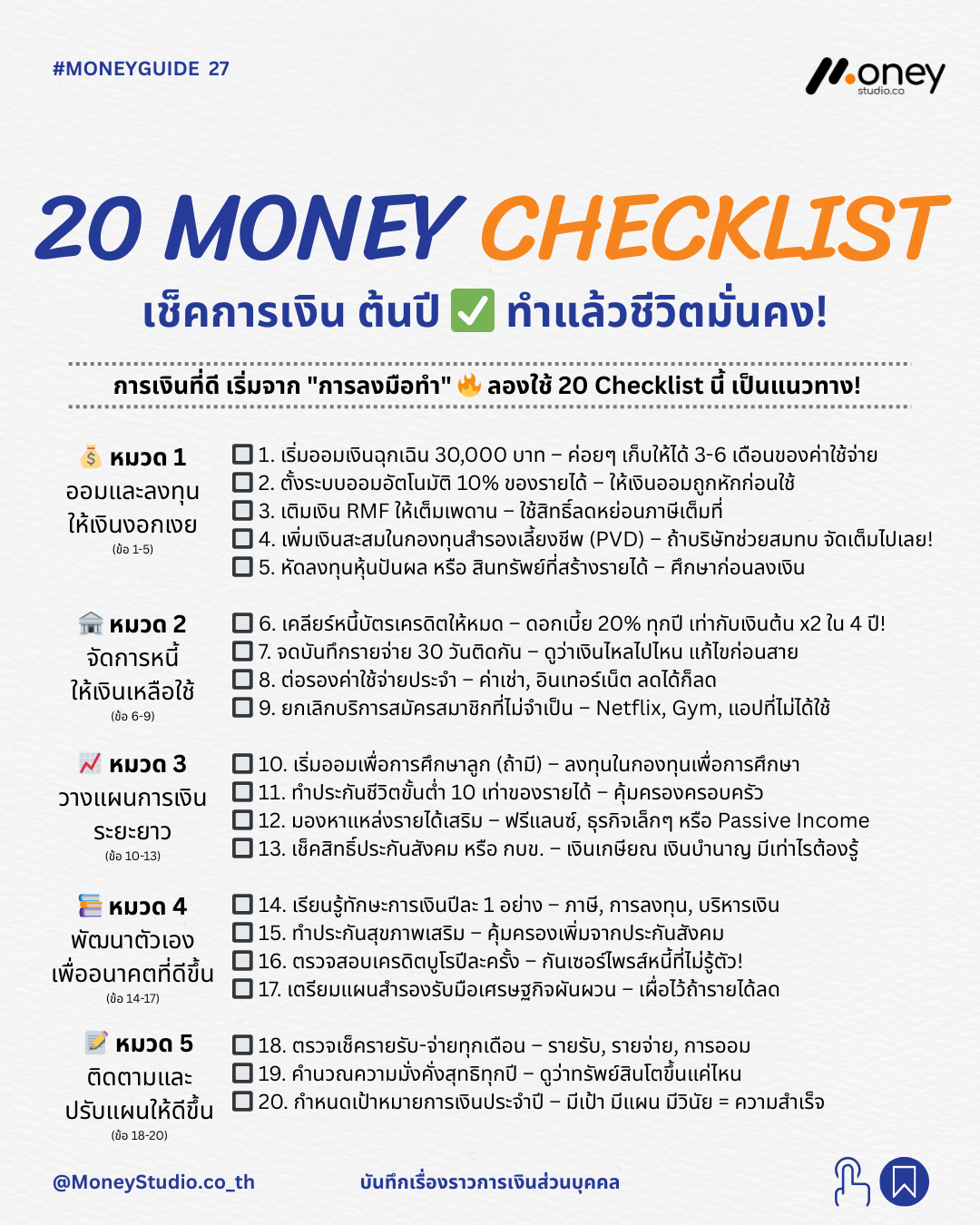 เริ่มต้นจากข้อที่ทำได้เลย! ไม่ต้องทำครบทุกข้อในวันเดียว แค่เริ่ม ข้อแรก ก็เปลี่ยนอนาคตการเงินได้แล้ว