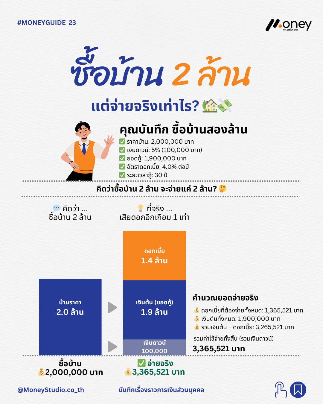 กรณีศึกษา: คำนวณยอดจ่ายจริงของบ้านราคา 2,000,000 บาท