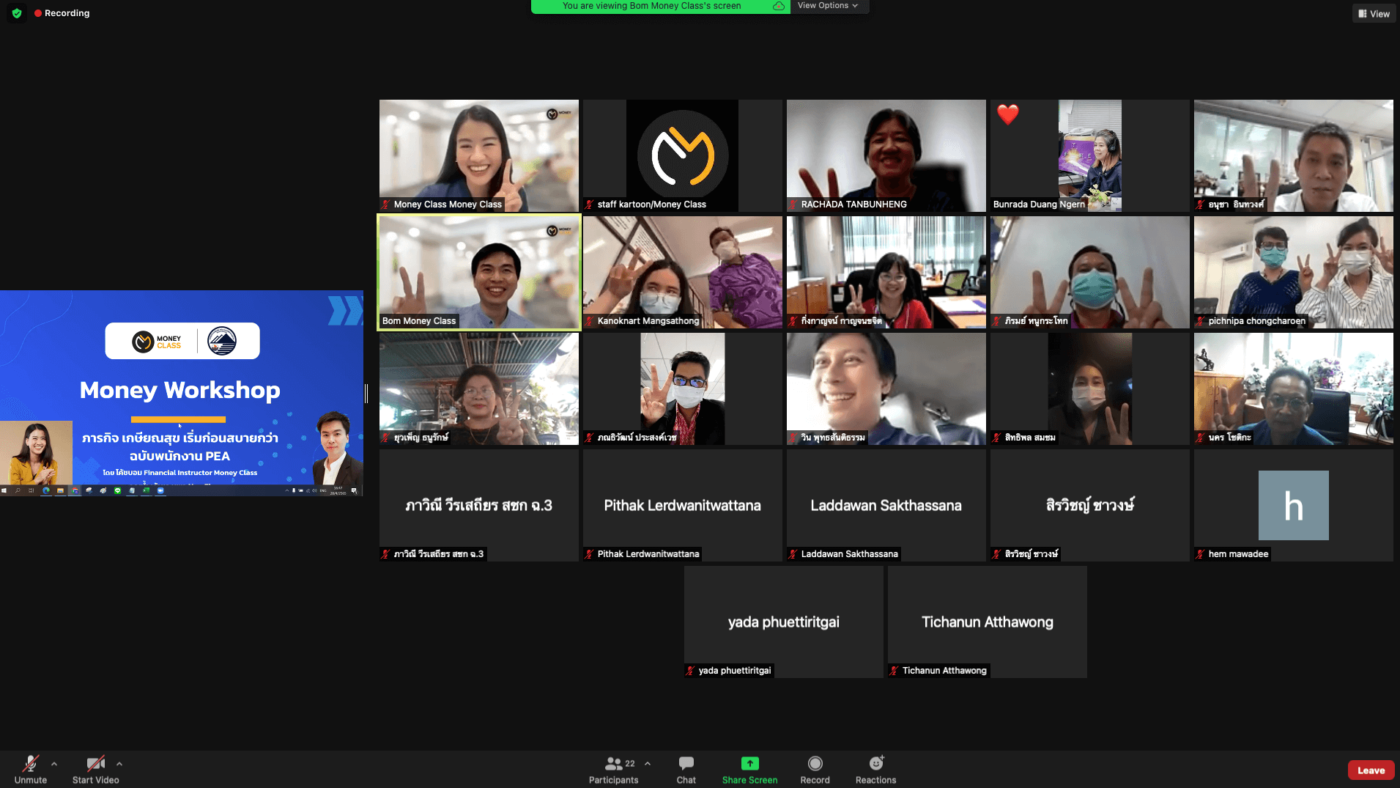 - การจัดกิจกรรม Workshop เพื่อให้พนักงานได้เข้าใจหลักการของการบริหารเงิน ซึ่งประกอบไปด้วย 3 หัวข้อ บริหารเงิน, เกษียณ และลงทุน
